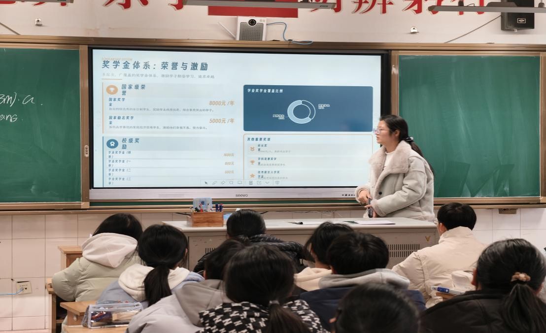 母校溯源,助学政策启新程。为搭建高校与高中的助学沟通桥梁,让母校学子全面了解高校资助政策,实践团重返玉祁高级中学、金沙中学开展母校行宣讲。成员们以学长学姐的身份,为学弟学妹详细解读学校各项资助政策,从助学金申请到奖学金评定等核心内容逐一拆解,同时结合自身经历解答大家关于大学求学经济成本的疑惑,在扫除经济顾虑的同时,全方位介绍学校办学特色与校园风貌,有效点燃了同学们报考淮阴工学院的热情。