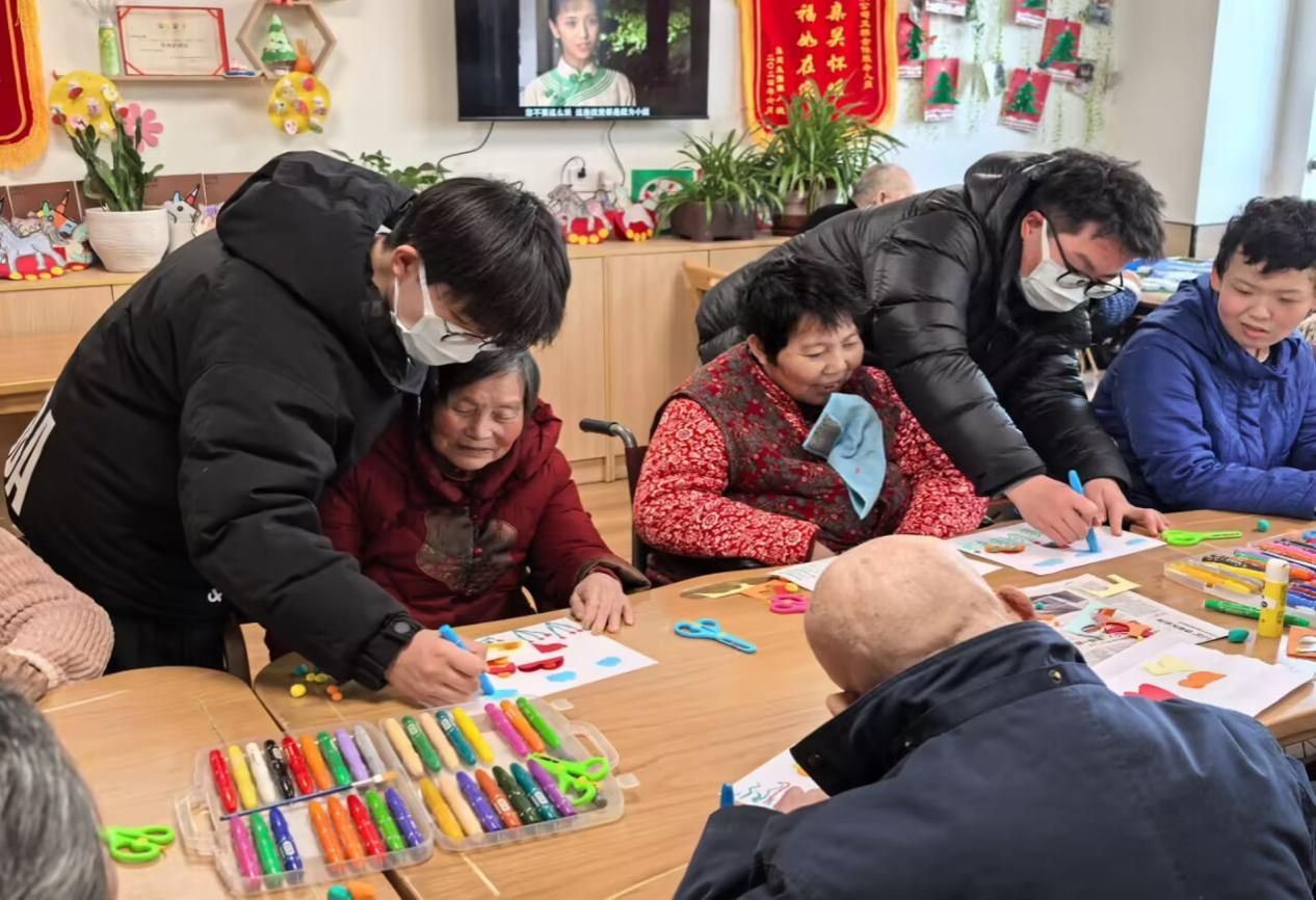 巧心手工,温情陪伴。在专业知识科普之外,实践团还暖心参与了养老院的趣味手工活动。成员们与老人亲切围坐在一起,耐心细致地协助完成折纸、粘贴类手工作品,在一折一叠、一粘一贴的温柔互动中,传递着真挚的陪伴与关怀,让养老院里时时充满欢声笑语。
