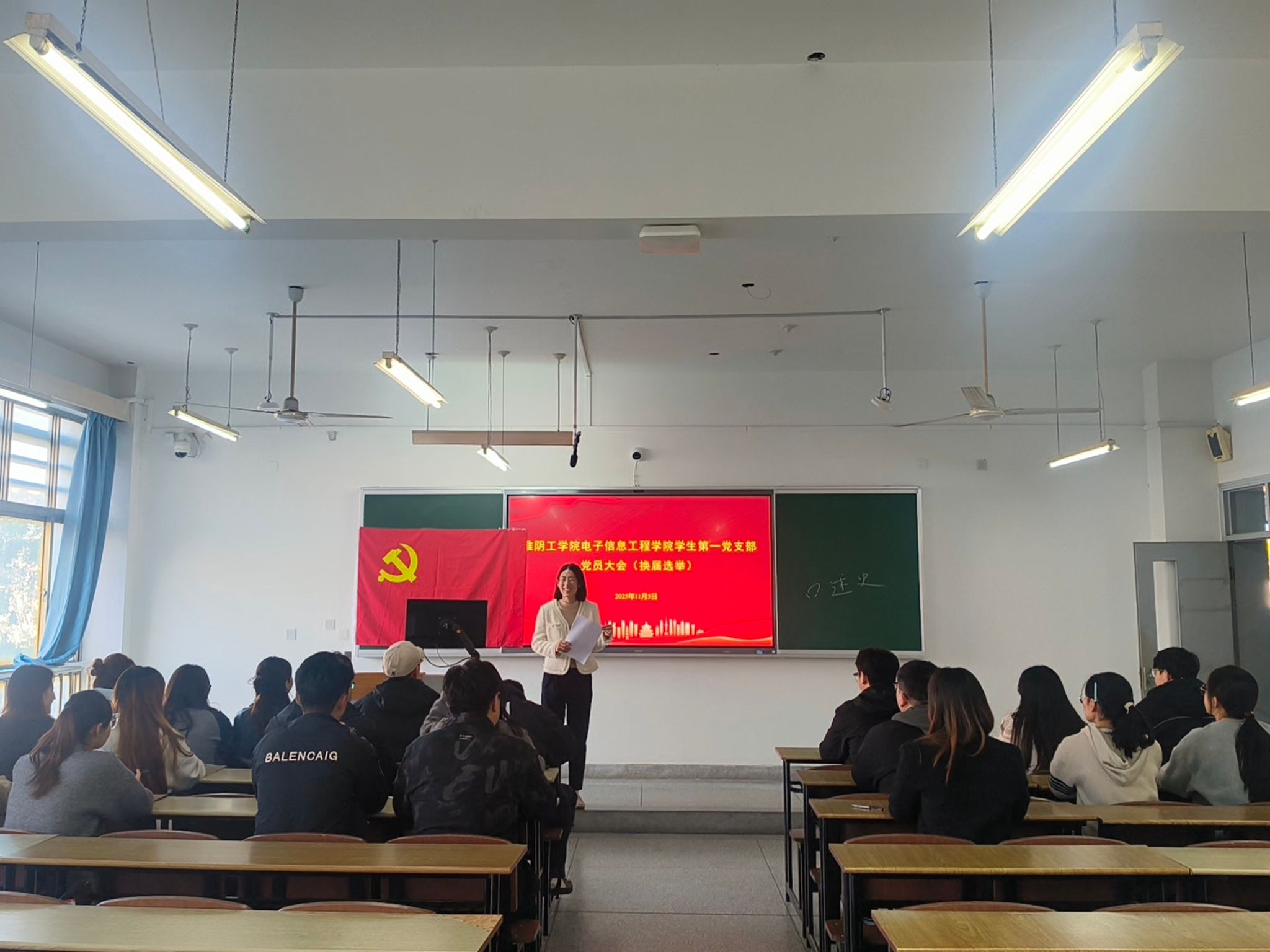 为进一步加强基层党组织建设,增强党支部凝聚力和战斗力,根据党章及相关规定,并经上级党委批准,淮阴工学院电子信息工程学院学生第一党支部于2025年11月5日召开党员大会,顺利完成支部委员会换届选举工作。