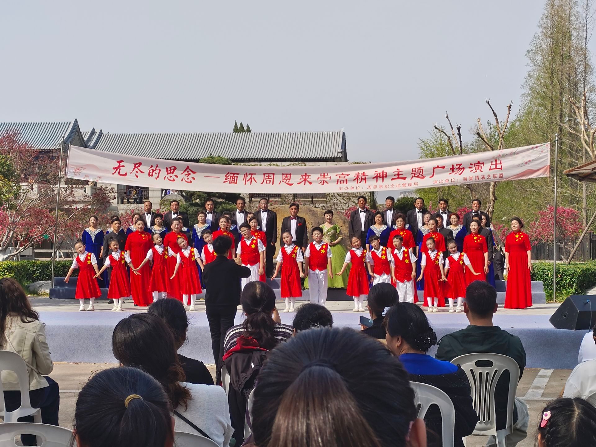 支部党员代表前往周恩来纪念馆岚山诗碑广场,认真观看了由周恩来纪念地管理局主办、淮安市海棠情艺术团倾情表演的“无尽的思念——缅怀周恩来崇高风范”主题广场公益演出。演出通过诗歌朗诵、情景讲述、歌曲演唱等艺术形式,生动再现了周恩来同志光辉一生中的感人片段。