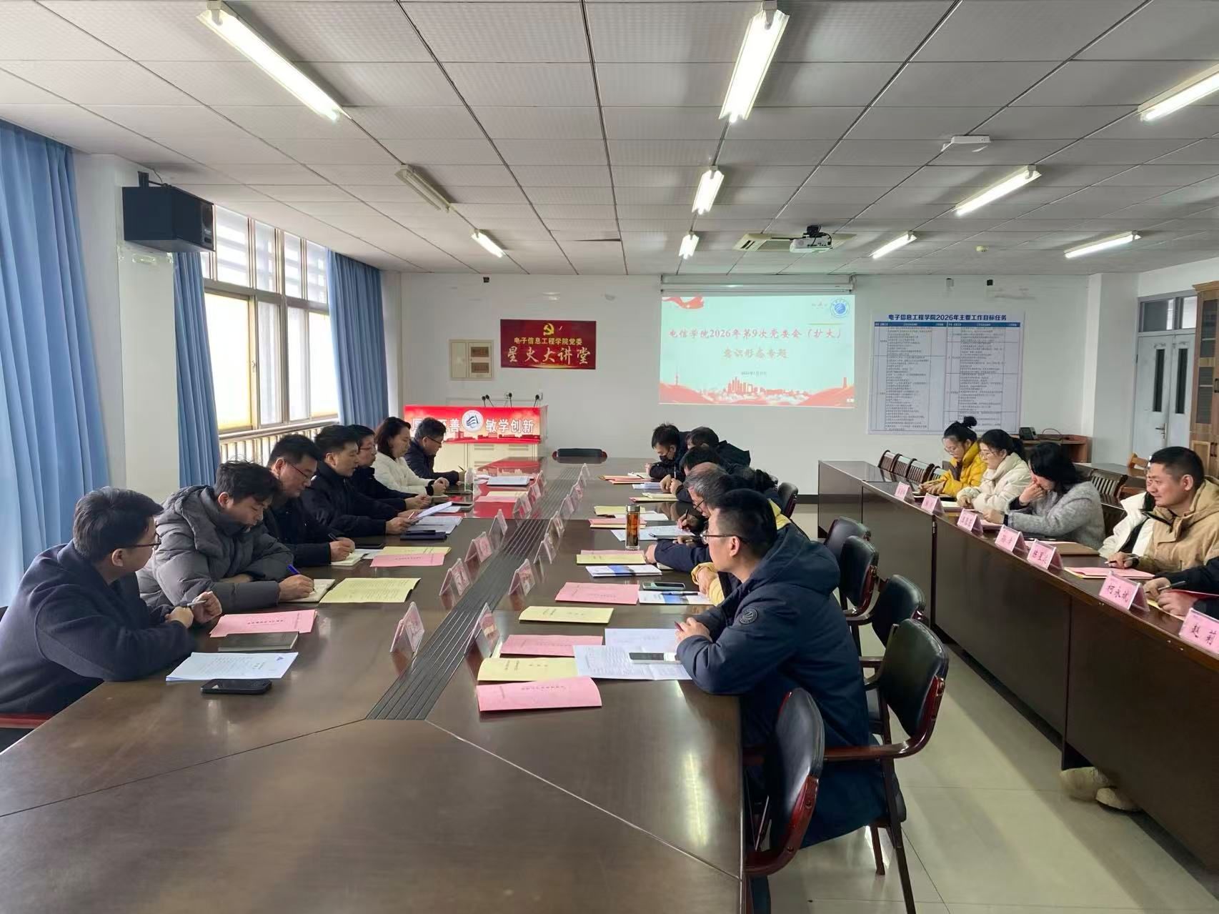 会议专题学习学校意识形态工作文件精神,并举行了2026年电信学院意识形态工作责任书签署仪式,进一步明确意识形态工作的制度规范、责任清单和考核要求,强化依规管理和制度执行。